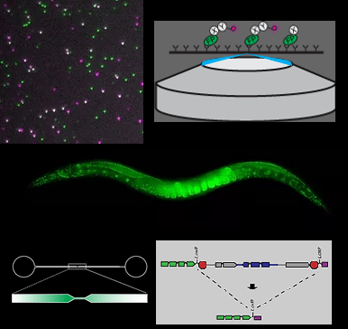We employ a multi-disciplinary approach including single-molecule biochemistry, genome editing, microfluidics, fluorescence microscopy of living cells, and quantitative image analysis. We work with embryos of the nematode worm C. elegans and with 3D cultures of mouse embryonic stem cells. If the tool we need to answer a scientific question doesn’t exist, we invent it.