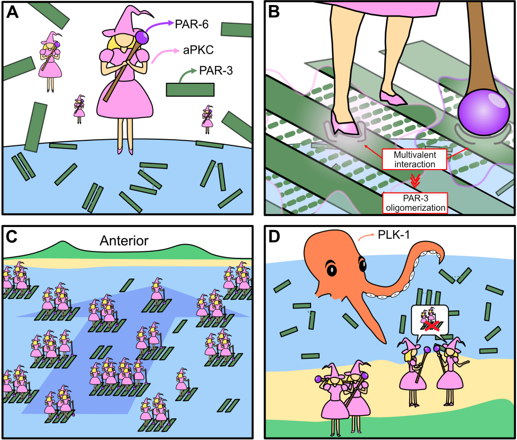 How the PAR complex (composed of aPKC, PAR-3 and PAR-6) assembles has been an open question in our field since the early 2000s. In a tour-de-force of single-cell biochemistry, Sheng-Ping showed that PAR-3 clustering and its binding to aPKC are cooperative, due to multivalent interactions between aPKC, PAR-6, and multiple PAR-3 monomers within each oligomer. This represents a big step towards understanding how the PAR complex is put together – a problem we’ve been chasing for almost 15 years! Stay tuned for the next chapter.
